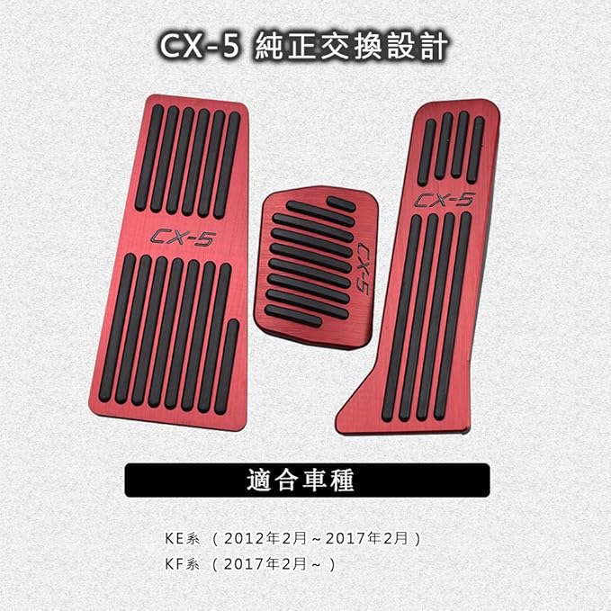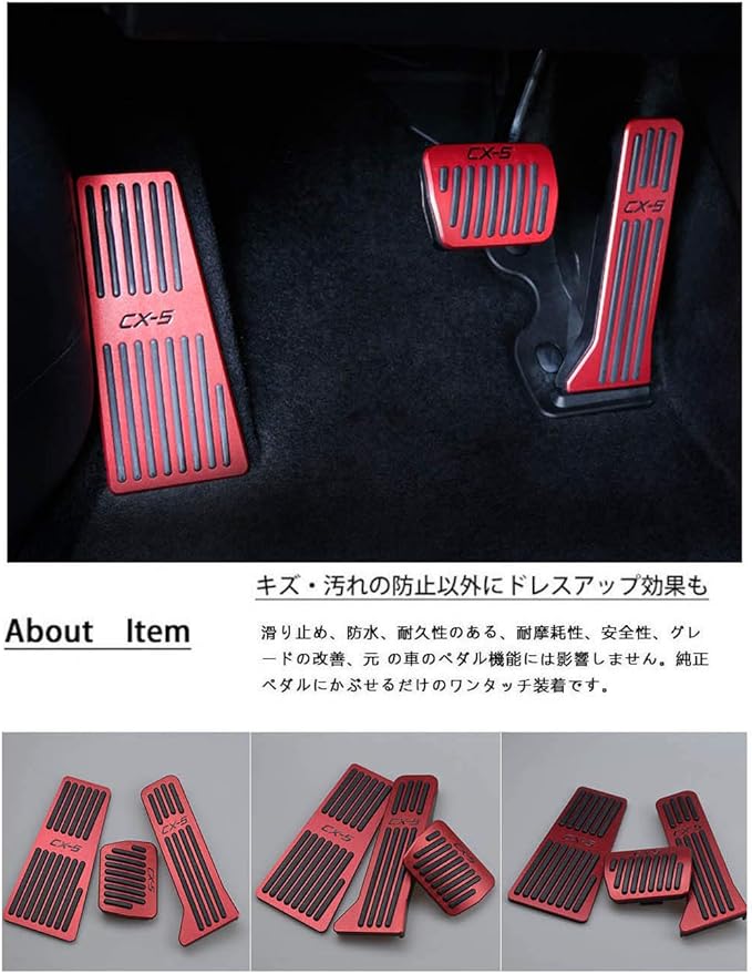 Boyousマツダ CX-5 KE系 KF系 2012-2020 アルミ ペダル 工具不要 CX-5ロゴ 専用設計 ブレーキ フットレスト アクセルペダル カバー 防キズ 防汚れ 滑り止め 2点セット(レッド)