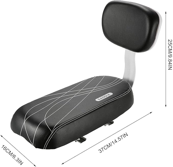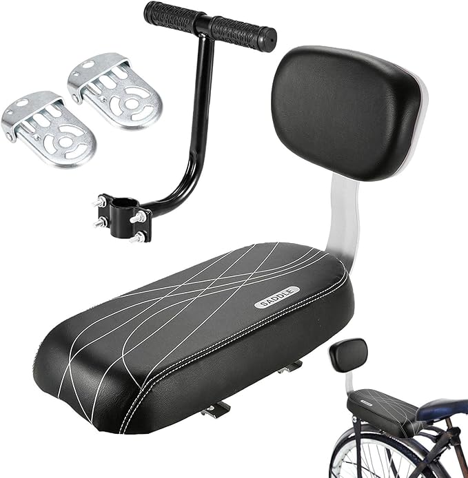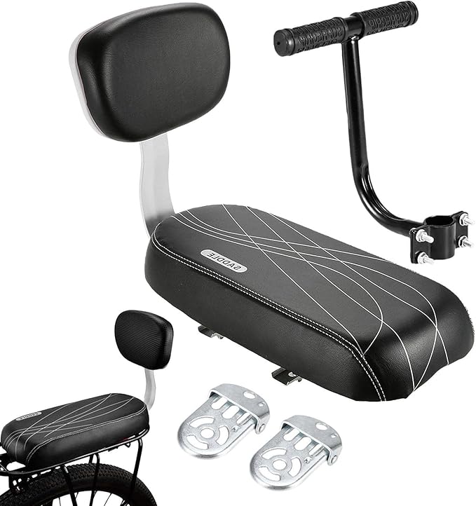 ️耐久性のある素材:子供用自転車シートは厚いスポンジ、ステンレス鋼、鉄で作られています。素材の品質は非常に高いです。 PU生地はお手入れが簡単で、長寿命です。