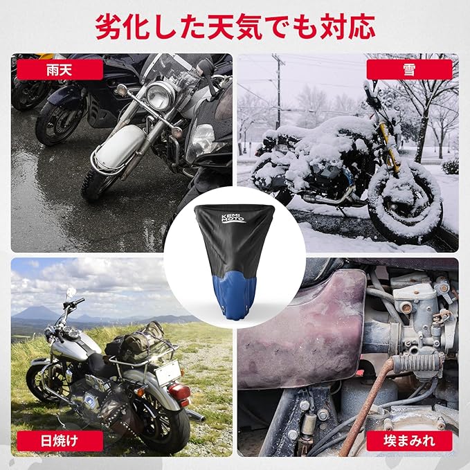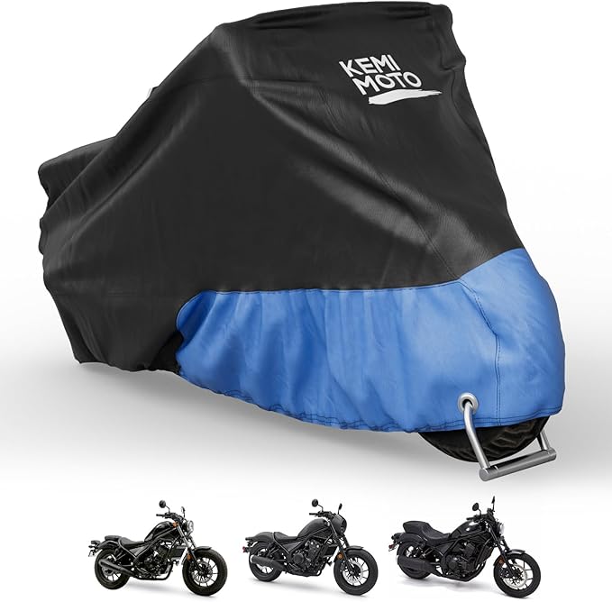 【革新版】KEMIMOTO レブル250/500/1100用 バイクカバー 防水300D厚手 UVカット 紫外線防止 高防風 防埃 防雨 防雪 反射テープ付き 色褪せない 耐用 盗難防止 収納袋付き ホンダのレブル用カバー ブルー