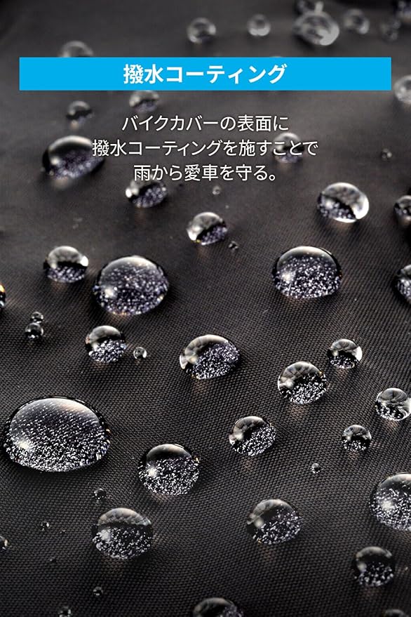 はっ水加工:カバーの生地にはっ水加工をすることで、雨の侵入を防ぐ