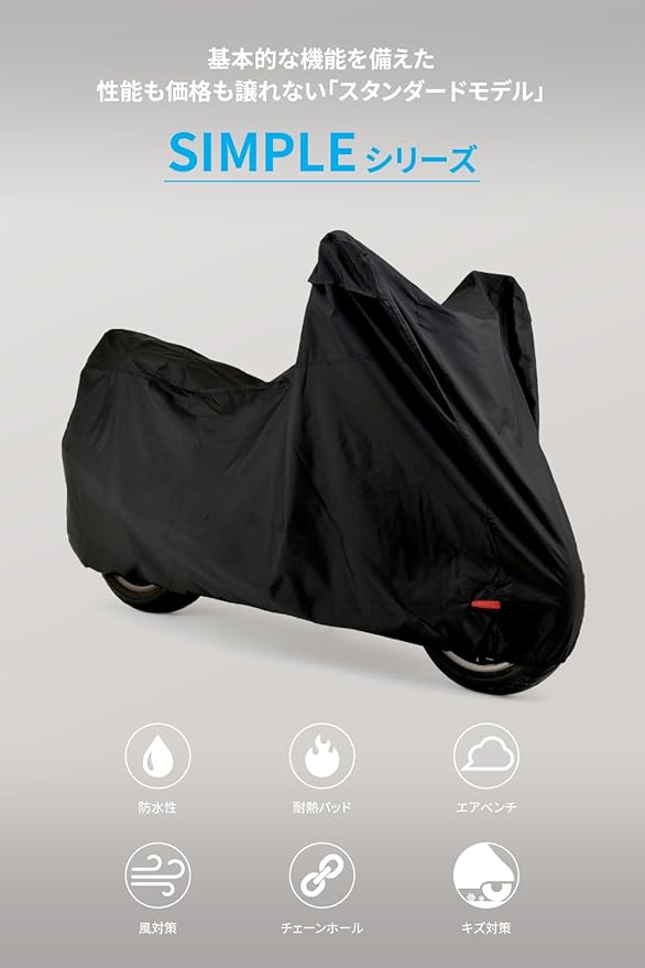 シンプルながらも、必要な機能を装備したスタンダードバイクカバー