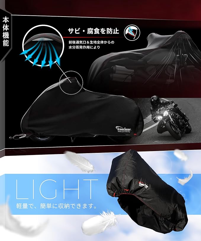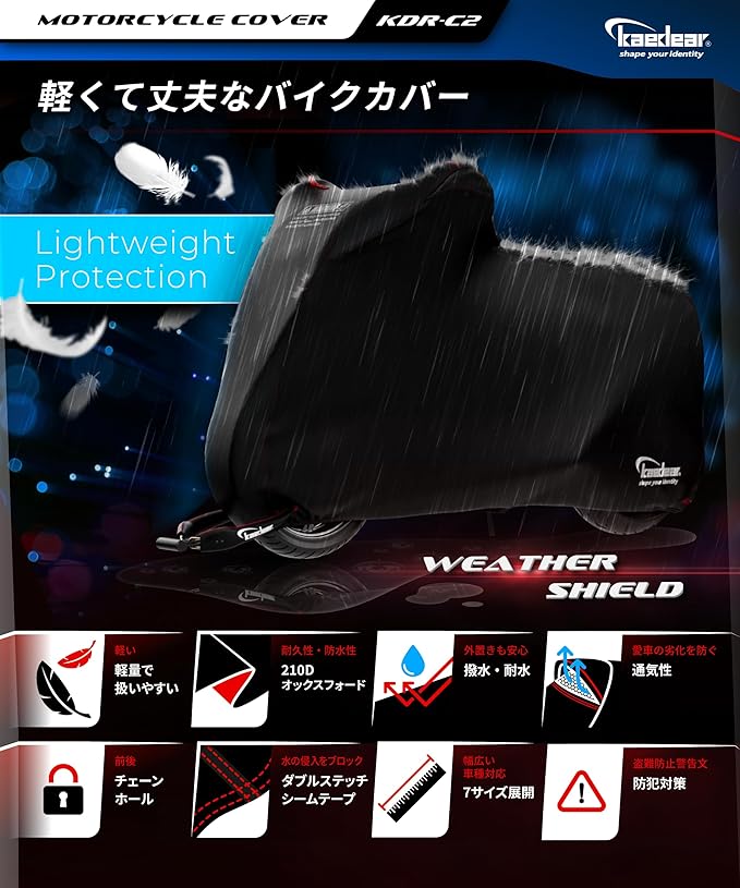 Kaedear(カエディア) バイクカバー 中型 125㏄/400㏄ バイク カバー 盗難防止 ロック穴 風飛び防止ベルト 撥水 ウェザーシールド KDR-C2-2L (235 140 100)