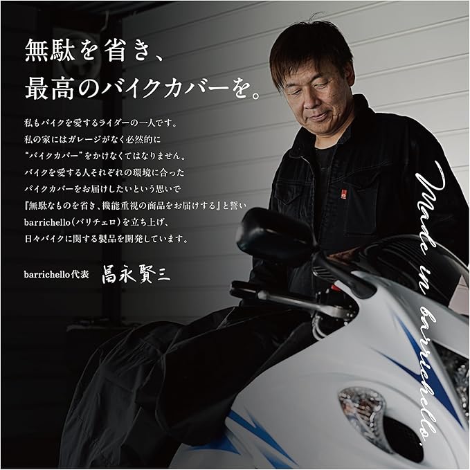 「Barrichello」のバイクカバーは、独自に品質管理及び検品等をしっかり実施して販売しておりますので、ご安心してお買い求めください。 【注】対象となるバイクは立体物ですので、バイクの形状、年式によって入らない場合がございます。またリアボックス等、カスタムされますと寸法が変わってカバーも違うサイズが必要になりますのでご注意ください。サイズ選びに不安な場合は、事前にご相談ください。