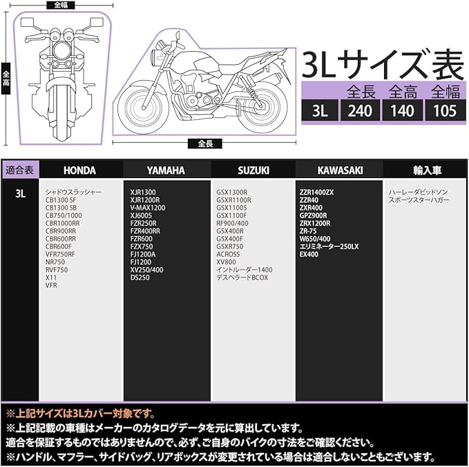 Active Winner バイクカバー 丈夫な厚手生地 撥水 UVカット 風飛び防止 鍵穴付 (3Lサイズ, BLACK (黒))