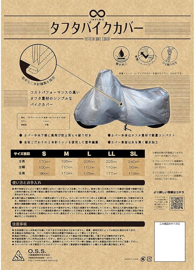 大阪繊維資材(Oss)INFIMO (大阪繊維資材) タフタバイクカバー 軽くて扱いやすい、シンプルカバー シルバー Sサイズ IMA91401