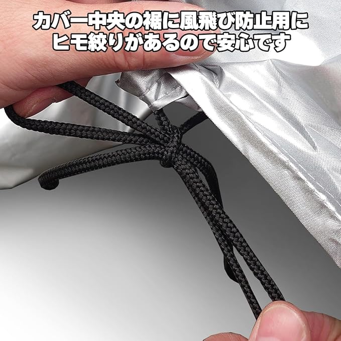 ※台風や嵐など強風時のカバーの使用は避けてください。カバーめくれやバタつきによる擦れ傷・バイクの転倒を招く可能性があります。