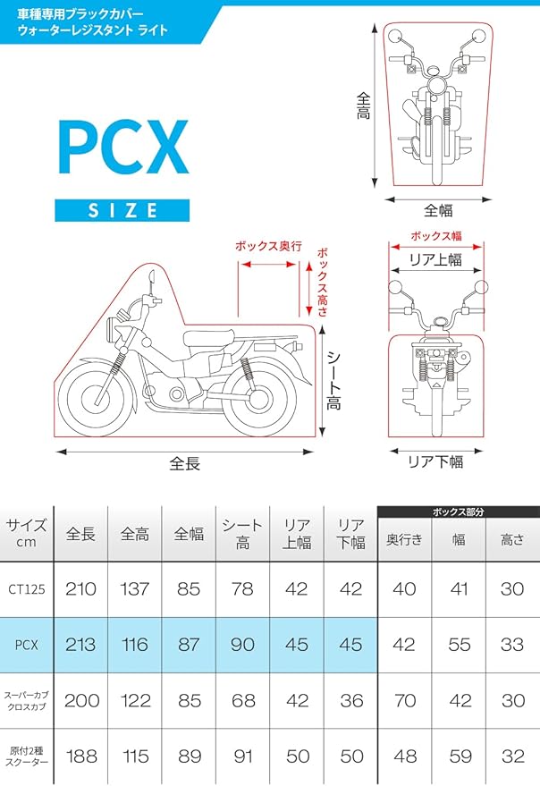 PCX専用 ハンドルロック状態に合わせたバイクカバー(スクリーンカバー付き)