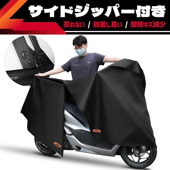 ✅【便利機能】「側面ファスナー」搭載:ファスナーはカバーを使用時に助けられる利点:✅1.時間節約、僅か10秒でスピーディーな脱着。✅2.掛ける際にバイクとの摩擦を減少できます。✅3.ファスナーを開けて湿気排出。✅4.カバーを掛けてから熱気放出作業ができます。(✅PS:ファスナーは柔らかく作っており、バイク全体に傷を付かないように工夫をしております。)
