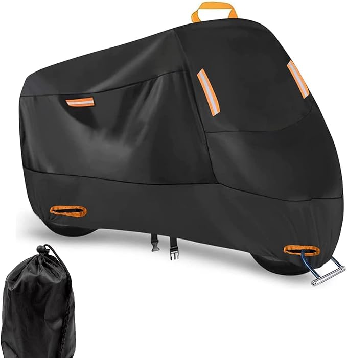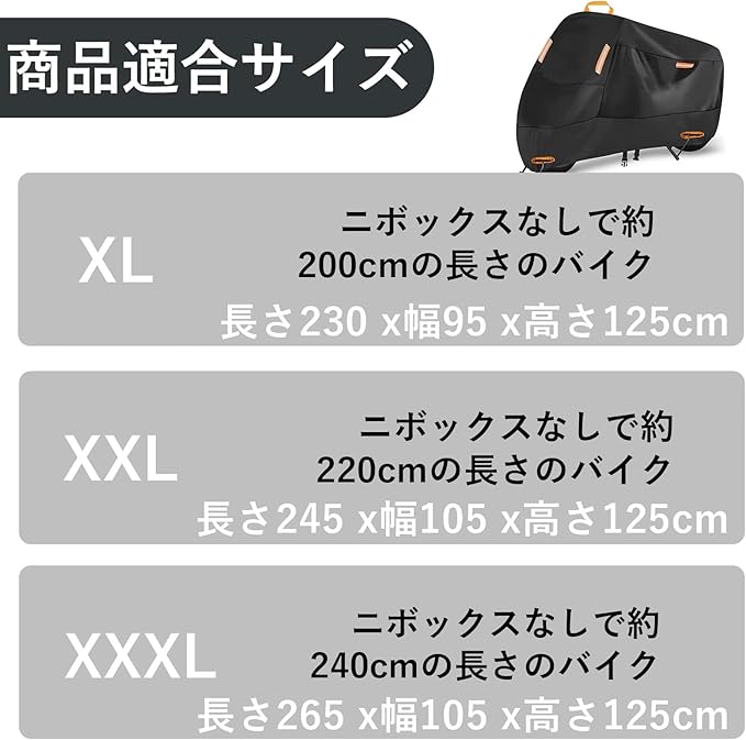 バイクカバー 厚手 車体カバー 盗難防止ロック穴 オートバイカバー 防水 耐熱 警告反射 紫外線防止 UVカット 防風 防埃 防雨 防雪 収納バッグ付き (XXXL(265*105*125cm))