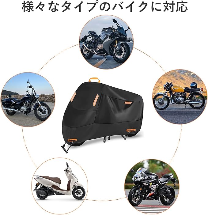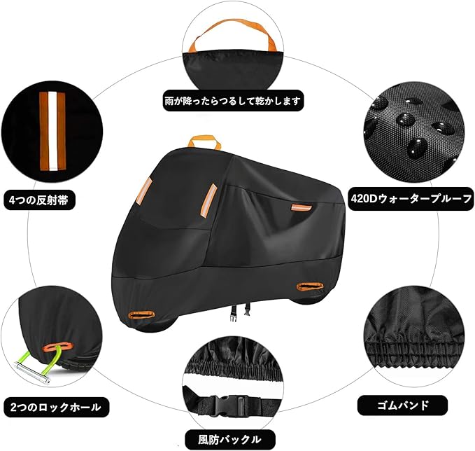 防水性能: 高品質な防水素材を使用し、雨や雪から大切なバイクを守る設計