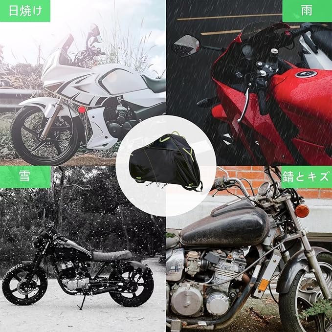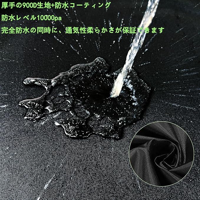 【完全防水】バイクカバーは2層のPU防水コーティングを採用しており、防水性が非常に高く、大雨でもカバーが漏れることはないです。 完全防水でありながら、通気性と柔らかさも兼ね備えています。