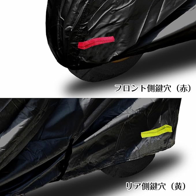 前後でアイレットの色が違うため、カバーの前後がわかりやすい。(前方 : 赤色 / 後方 : 黄色)