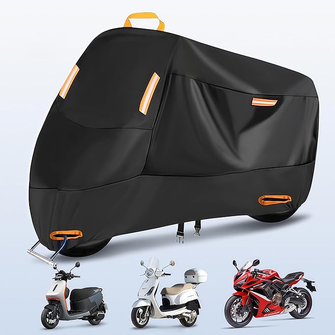 【420D厚手&バイクカバー&収納バッグ付き】バイクカバーは高品質の420Dの厚手素材を使用し。二重縫製により強度も増しており、UVカット、防雨・防雪にも対応しております,悪天候にもしっかりと対応します,風雨や日差しの影響から大切なバイクを守ることができます,未使用時や持ち運びの際にはコンパクトに収納可能です。