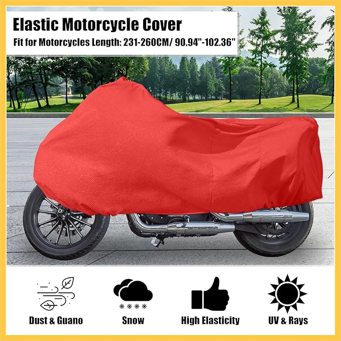 BULLSPANN オートバイカバー ストレッチ弾性生地 屋内 ユニバーサル 耐久性 防塵 日焼け止め スノー保護カバー 適合231-260 cmオートバイ レッド XXXXL バイク用 交換品