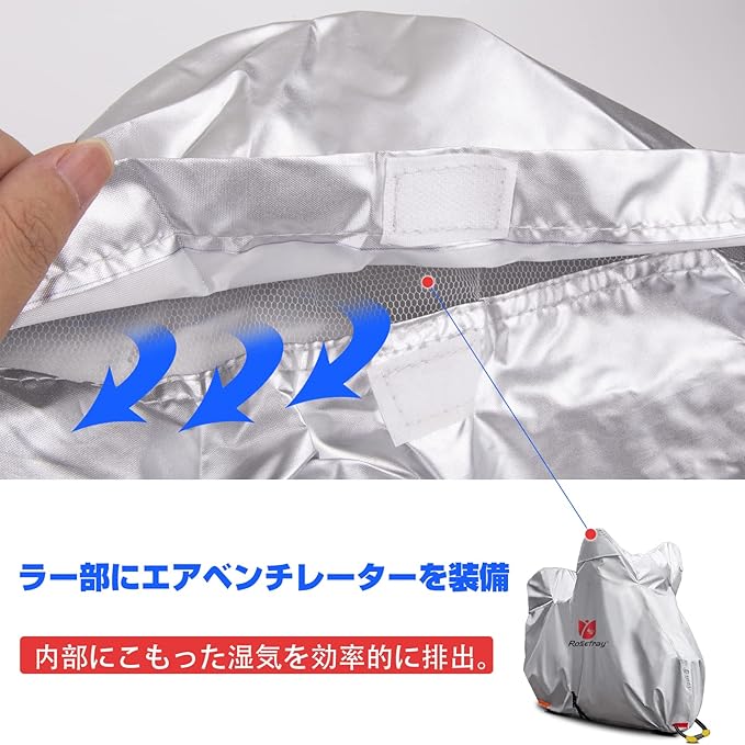 ✅【紫外線防止&耐熱性抜群】分厚い210Dオックスフォード布を採用したバイクカバーはシルバーコーディングを施しているので、uvカット可能、断熱効果に優れ、この夏にご愛車が欠かせないオートバイクカバーです。