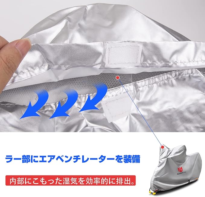 ✅【UVカット210Dオックス生地】シルバーの厚手210Dオックス生地を使用しております。二本針ミシンによる丈夫な縫製。 内層ぎんめっきで、車体に有害な紫外線をカット・反射します。水圧レベル2000pa!大雨でも、愛車をしっかり守ります