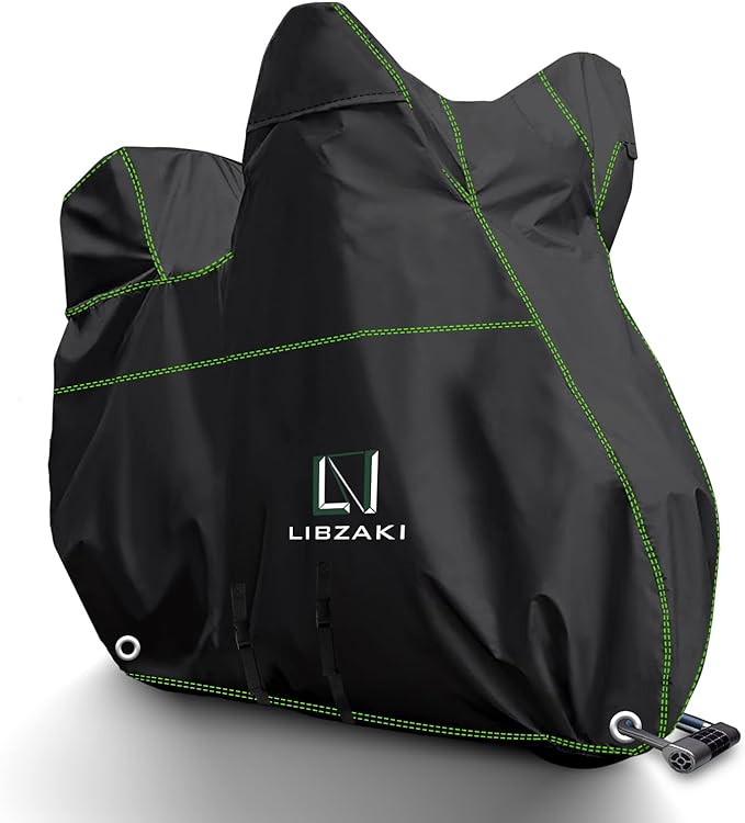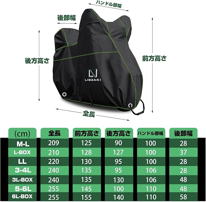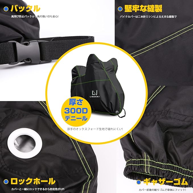 Libzaki バイクカバー 超撥水UVカット【300D アップグレードした厚手生地】6L-BOXまで対応 大型バイク車体カバー(黒)