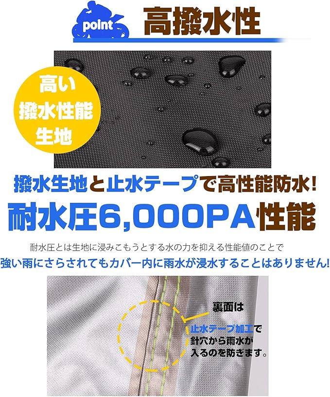 【防水グレードアップ】縫い目に防水テープが付いていて、さらに最新の生地を加えて、豪雨を恐れず、ご愛車を完璧に守ります!