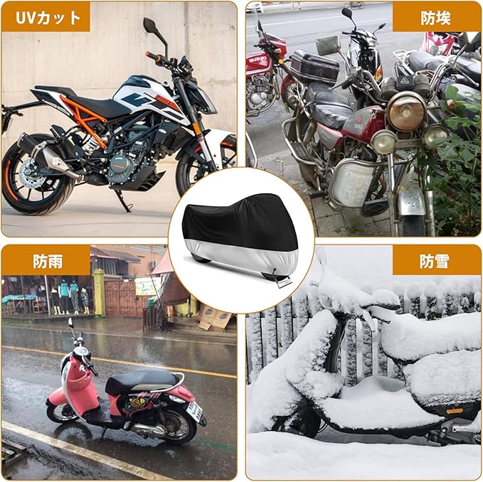 ZOEDO バイクカバー 原付 防水 厚手 盗難防止 紫外線防止 防埃 防雨 防雪 UVカット 丈夫 耐久 バイク用車体カバー 防風ベルト&ロック穴有り 収納袋付き(XXL)