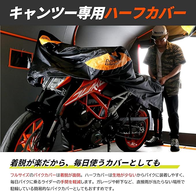 アウトドアギアの機能やトレンドを取り入れたキャンプツーリング用ハーフカバー。