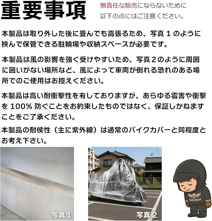 幅広い車種に対応|大型ネイキッドからアドベンチャーまで幅広い車種に対応。特に屋外長期保管や転倒リスクのある環境で真価を発揮。NANAHANの耐衝撃型バイクカバーは高耐久で信頼性抜群です。