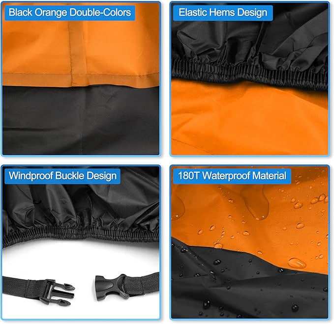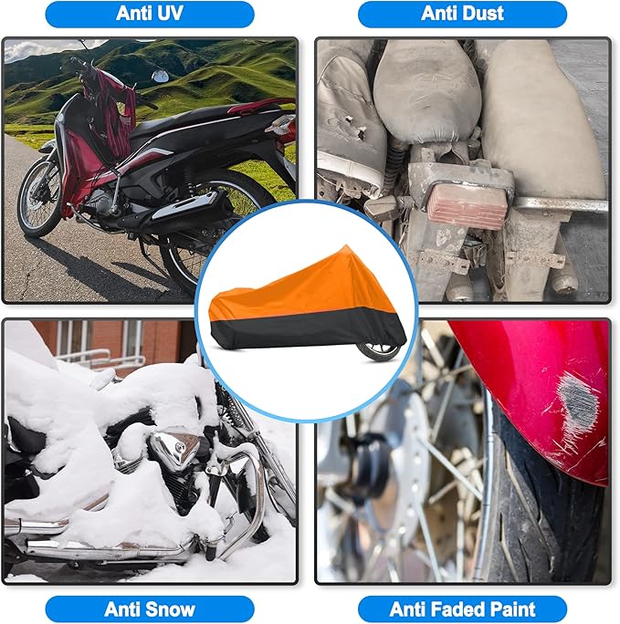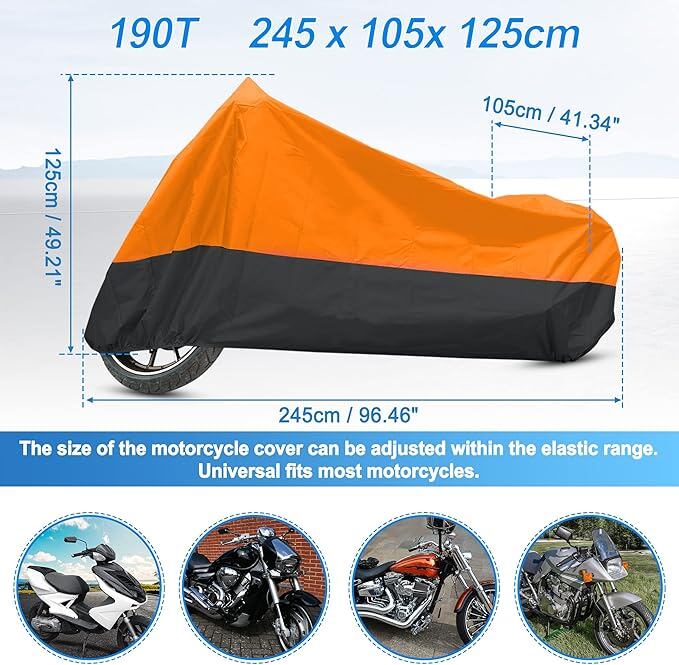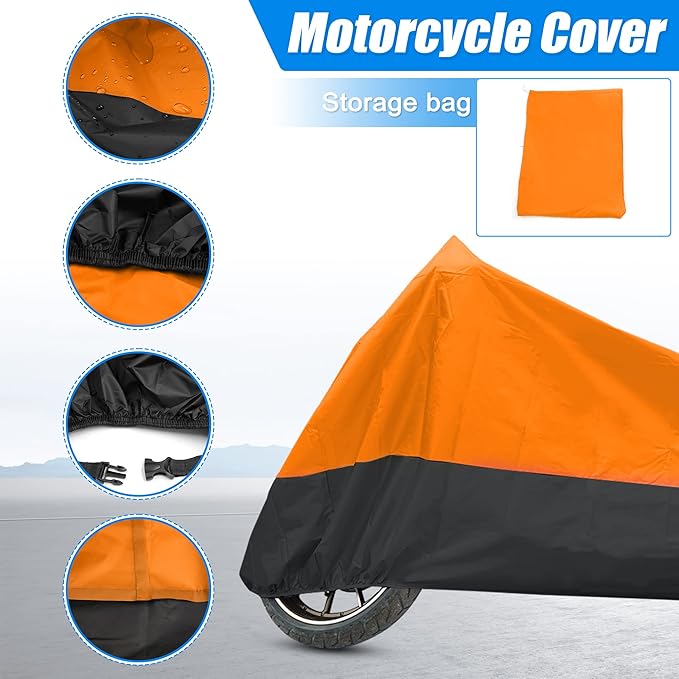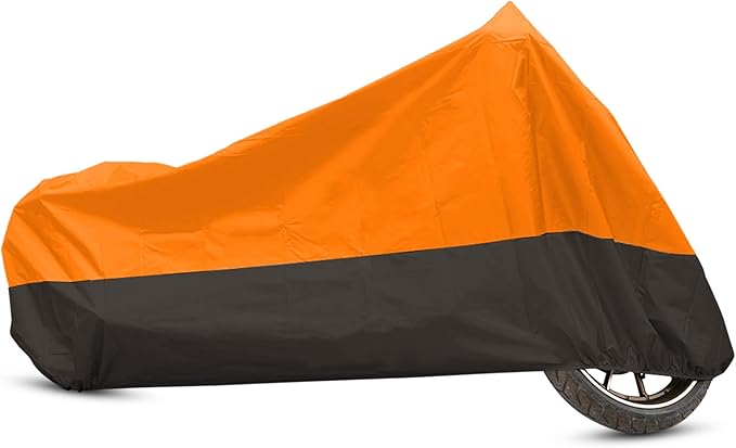 uxcell バイクカバー バイク車体カバー 大型 丈夫 厚手 180T 耐熱 防水 撥水 風飛び防止 UVカット 防埃 防雪 軽量 収納袋付き カバー XL オレンジ ブラック