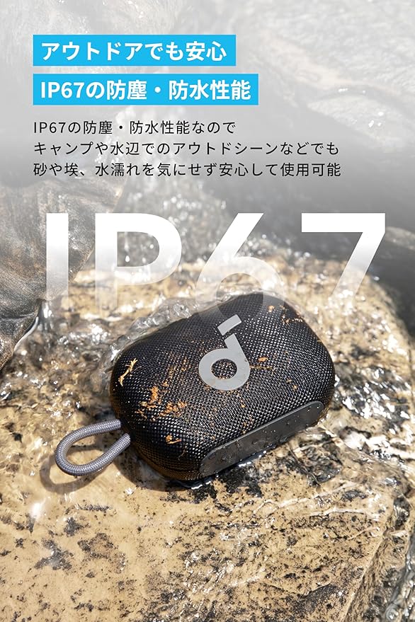 アウトドアでも安心IP67防塵・防水性能 : IP67の防塵・防水性能なのでキャンプや水辺でのアウトドシーンなどでも砂や埃、水濡れを気にせず安心して使用可能