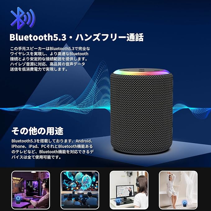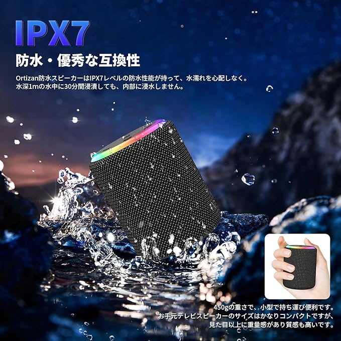 Bluetoothスピーカー ワイヤレススピーカー 小型 HIFI音質 大音量 ポータブルスピーカー【2025年の新アップグレード】 Bluetooth5.3 LEDライト付き Type-C充電 IPX7防水 AUX対応 マイク内蔵/TWS機能/TFカード対応/2台ペアリング お風呂 スマホ PC 車用