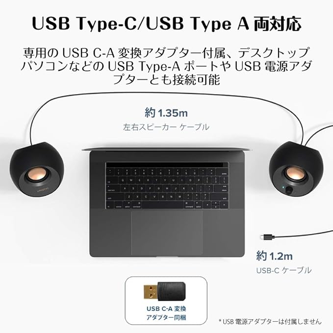 【USBオーディオ / Bluetooth対応モデル】人気のUSBパワー スピーカー Creative Pebbleが機能面でもさらに進化! USB Type-C対応&出力パワーアップに加え、新たにBluetoothワイヤレスとUSBオーディオ再生にも対応!!雑誌も認めるハイコスパPCスピーカー【CREATIVE製品は技適マーク取得後販売しています】