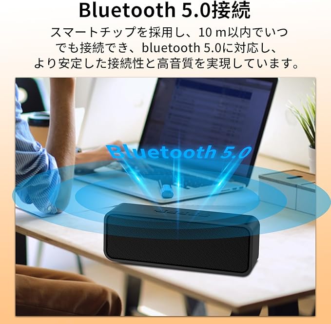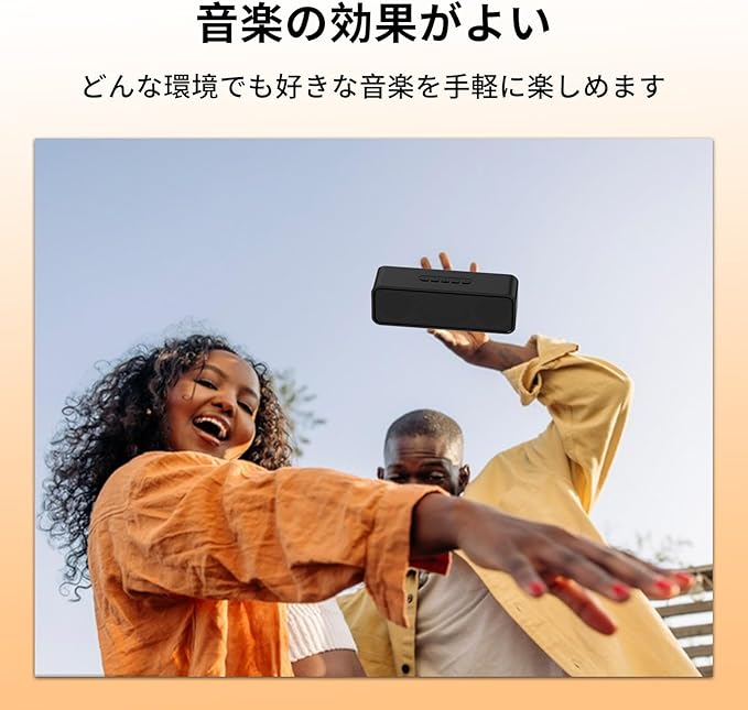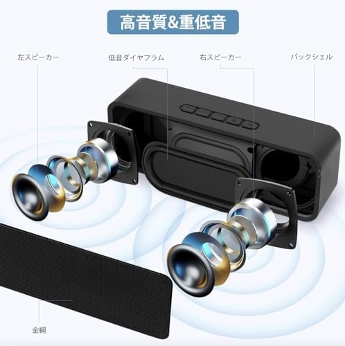 【高音質&重低音】10W(5W 2)デュアルドライバーを採用して、内蔵高感度マイクと先端技術を採用しており、最大音量にしても音が割れることもなく、低音から高音までクリアでバランスよく鳴り響きます。また、コンパクトな小型Bluetoothスピーカーですが、パワフルさに欠けなく、サイズを超えた迫力のサウンドと重低音を提供しております。