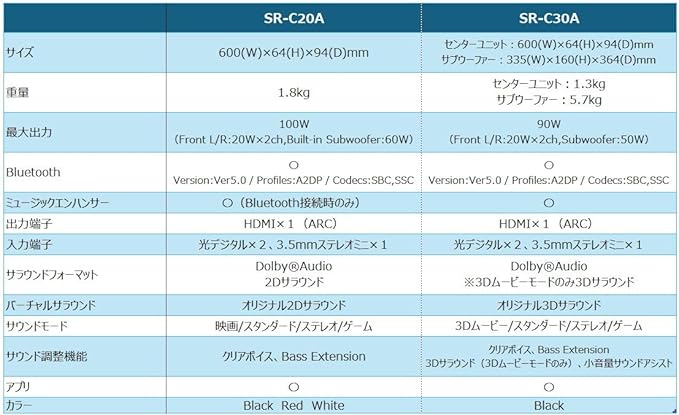 SR-C30A(3Dサラウンド サウンドバー+サブウーファー)