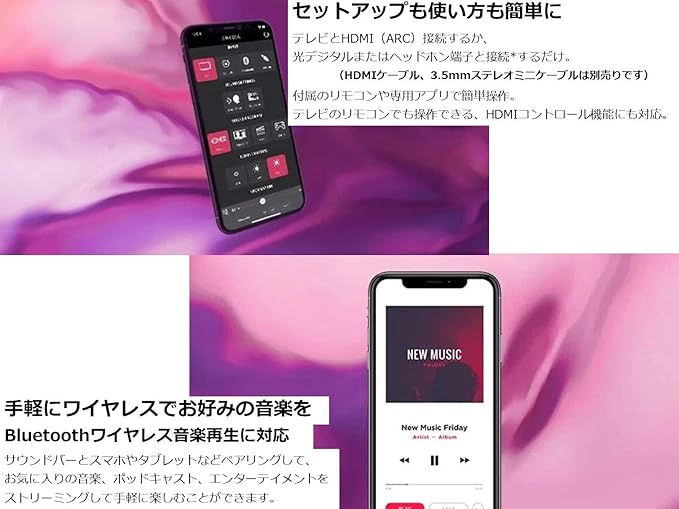Bluetoothワイヤレス音楽再生に対応、専用アプリ「Sound Bar Remote」による操作が可能