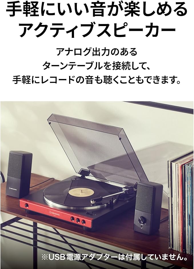 オーディオテクニカ AT-SP95 アクティブスピーカー PC タブレット レコードプレーヤー USB給電 省スペース設計 前面ヘッドホン端子 省電力 高出力
