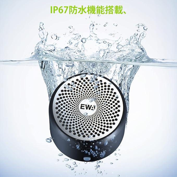 【EVA製キャリングケース付け】EWA A106ポータブルスピーカー、超コンパクトBluetooth5.0、12 時間連続再生、IP67規格、パッシブラジエータ 搭載/重低音/車載、風呂用(ブラック)
