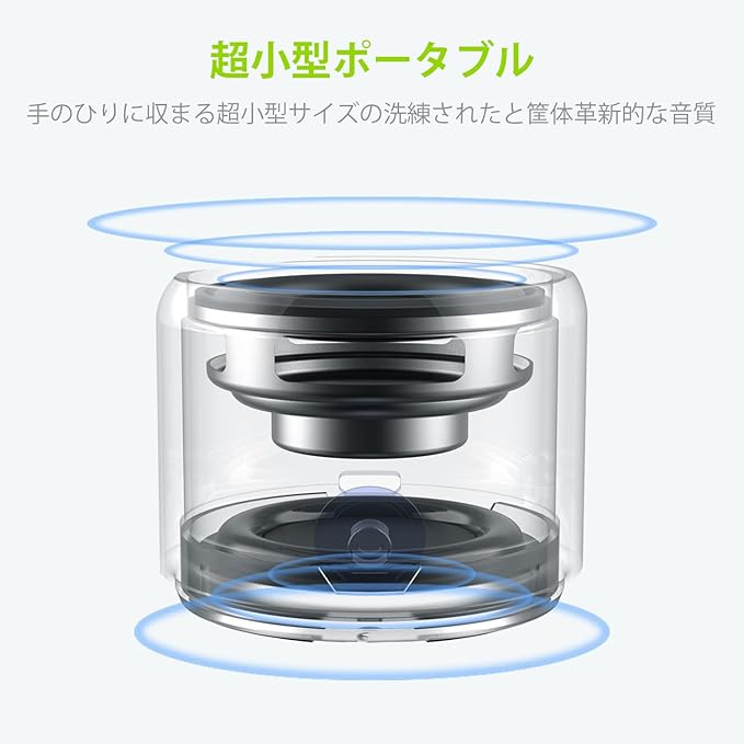 ミニマルなデザイン: 当社の目的は、いつでもどこでも持ち運びができる素敵なスピーカーを作ることでした。そのため、必要のないマイク、3.5mmジャック、不必要なボタンなどの機能をなくしました。たった一つのシリコンボタンしかありません(押し続けるとオン/オフ、タップすると一時停止、ダブルタップまたはトリプルタップで曲変更)。金属ケースとステンレススチールのメッシュで通常のスピーカー以上です。