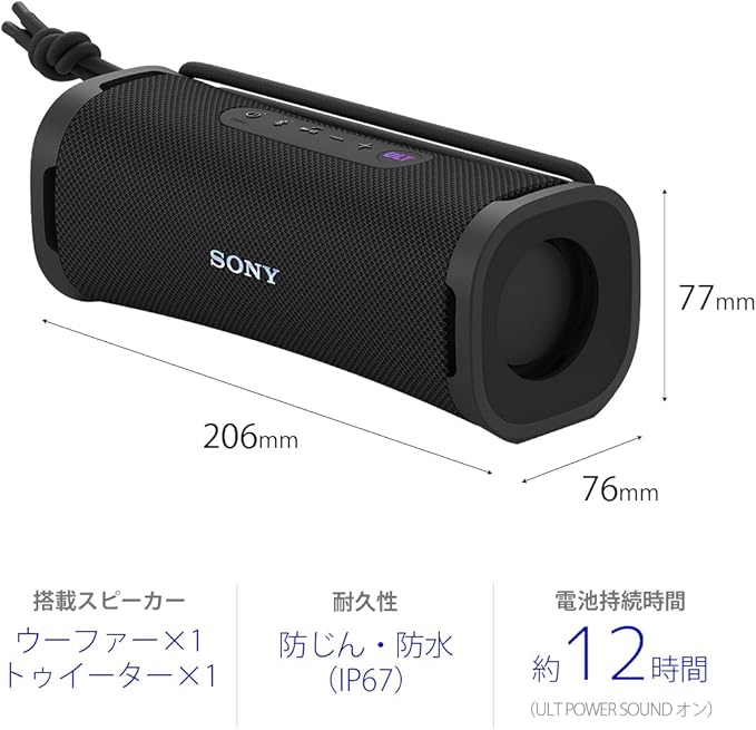 ソニー(SONY) ワイヤレススピーカー SRS-ULT10 :防水 IP67/ ULT FIELD 1/パワフル重低音/ロングバッテリー 12時間/ SRS-ULT10 BCブラック