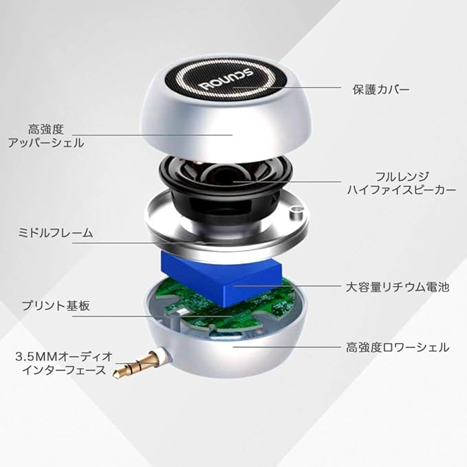 【正規品】 ROUNDS ポータブルスピーカー 日本人による企画・対応 ミニ スマホスピーカー USB充電 android iphone PC用 携帯用 タブレット用スピーカー 30w 小型で大音量 ミニスピーカー イヤホンジャック モバイルスピーカー ノベルティ対応可