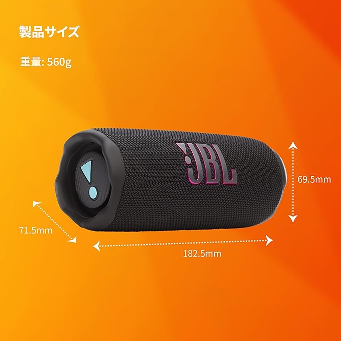 JBL FLIP 7 / ポータブルスピーカー/Bluetooth対応 / IP68 防塵防水/USB-C/アプリ対応/ストラップ・カラビナ付属/AURA CAST マルチスピーカー接続/ファンキーブラック / JBLFLIP7BLKO