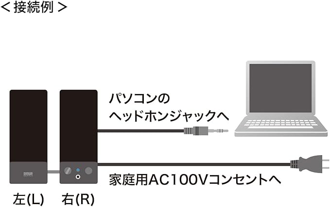 アンプ内蔵でヘッドホンステレオの出力端子やパソコンの音声端子につなぐだけで音楽を楽しめます。