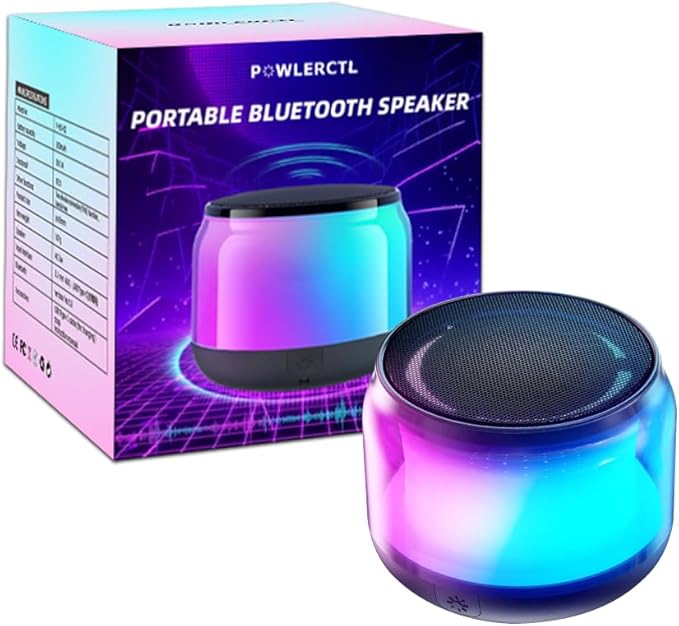 POWLERCTL スピーカー/ポータブルスピーカー/ワイヤレススピーカー (Protable Mini Bluetooth Speaker) 3D サラウンド, LEDライト 防塵IP6,内蔵マイク搭載/TFカード/AUX/TWS&FMラジオ対応 (ブラック)