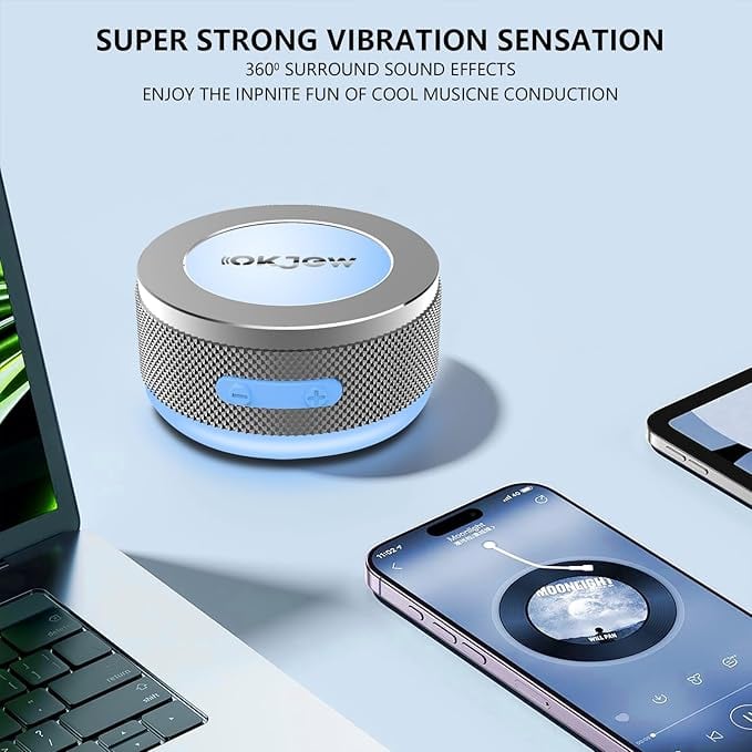 Okjew 骨伝導スピーカー Bluetoothスピーカー 振動スピーカー ポータブルワイヤレススピーカー 3Dサラウンドサウンド 7.5W出力 ダイナミックLEDライト搭載 家庭用 会社用 アウトドア用 (グレー 02)