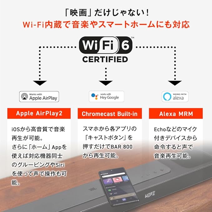 映画だけじゃない。AirPlay, Alexa MRM, Chromecast built-inを通してオンライン音楽ストリーミングサービスでミュージックも楽しめる。