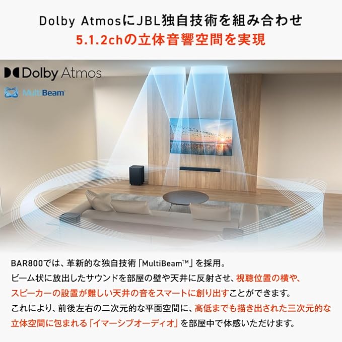 JBL BAR 800 Dolby Atmos 5.1.2ch 720W サウンドバー ワイヤレス サラウンド eARC HDMI Wi-Fi リアスピーカー & ワイヤレスサブウーファー JBLBAR800PROBLKJN