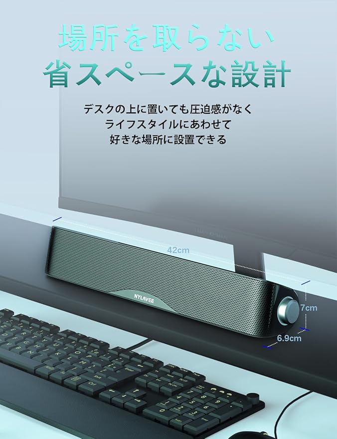 Nylavee PCスピーカー サウンドバー Bluetooth & AUX接続 六つのスピーカーユニット 10W ステレオ 大音量&豊かな低音 ラップトップ、タブレット、スマートフォンに対応、USB給電式のパソコンスピーカー