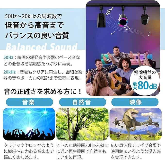 再生周波数帯域:50Hz-20kHz | スピーカー感度:80dB/mW