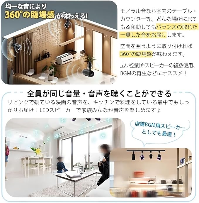 bluetooth LED スピーカー コンパクト ライティングレール用 ブルートゥース 12W リモコン付き LDRSPK12-BK (ブラック)