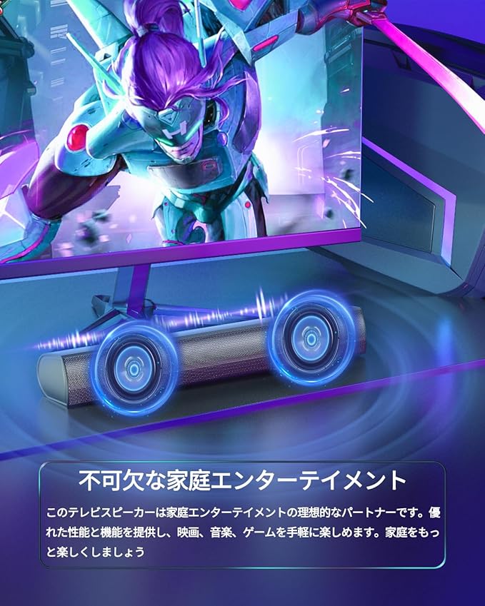 【パワフルなオールインワン サウンドバー体験】2つのスピーカーユニットとスピーカーポートチューブ、パワフルなサウンドを備えたオールインワン設計。映画館のような臨場感をご自宅で体験できます。コンパクトなサイズながら、2つのスピーカーユニットと1つのサブウーファーポートチューブが「バスレフ効果」を実現。高音質で多彩な音域を楽しめ、まるで音に包まれるような音場をお届けします。