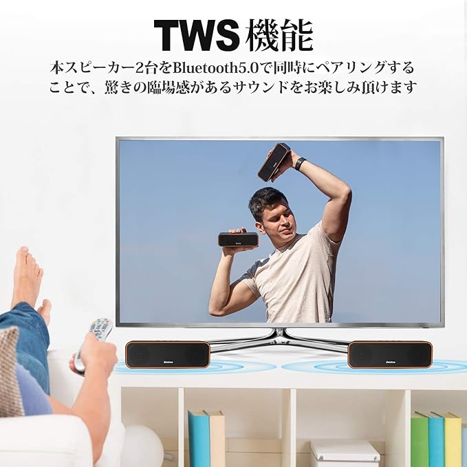【Bluetooth5.0&TWS機能対応】Bluetooth5.0で完全なワイヤレスを実現し、より高速なBluetooth接続とより安定的な接続範囲を提供します。スマートフォン(iPhone & Android)、iPadや他のすべてのBluetoothデバイスに簡単に接続できます。また、TWS機能にも対応しております。スマホは2台のブルートゥーススピーカーとペアリングできます。TWS対応で、真のステレオ音場を実現し、臨場感あふれるサウンドをワイヤレスで楽しめます。さらに、内蔵マイクでハンズフリー通話にも対応します。