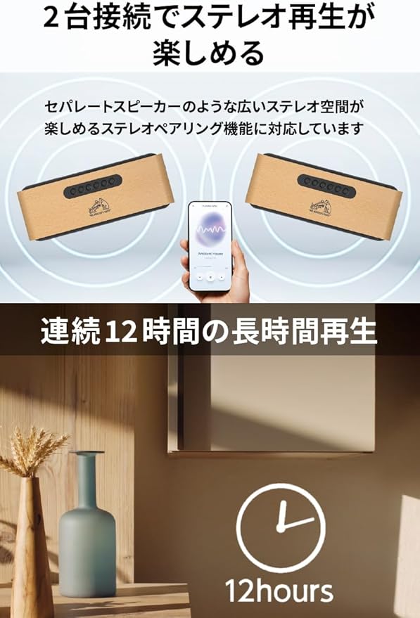 【最大12時間※の長時間再生】内蔵バッテリーで最大12時間※の長時間再生が可能。電池残量は天面のLED(白と青の 2 色 LED)で確認できます。 ※:使用条件により変わります。