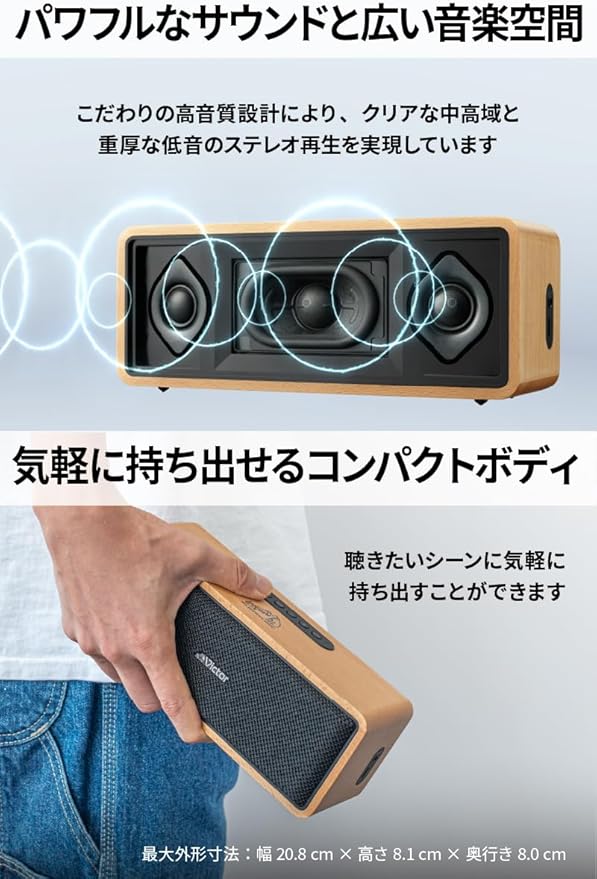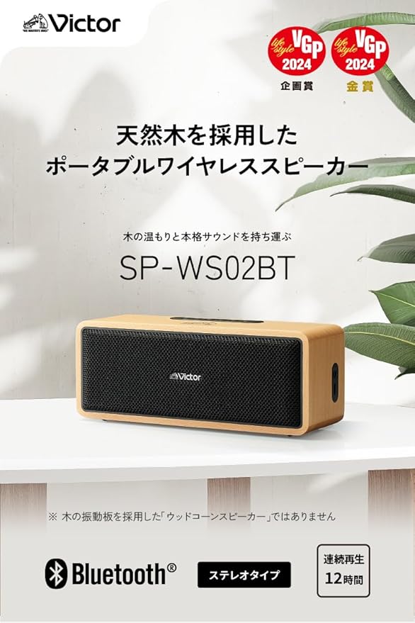 JVCケンウッド Victor SP-WS02BT Bluetooth スピーカー 小型 最大12時間再生 ステレオペアリング ポータブルスピーカー AUX対応 出力20W USB-C充電 ウッドデザイン
